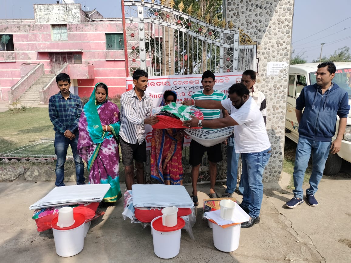 Distribution of Relief Materials to fire victims of Sendhgada Shelter of Chandbali Block of Bhadrak District on 16.01.2025.